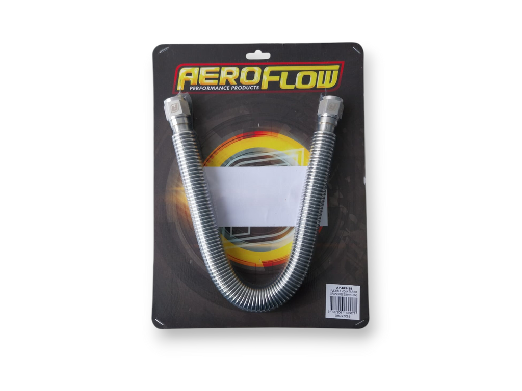 Aeroflow's universal flexible turbo drains are designed to help you quickly and eaisly plumb up your turbodrain. Featuring -10 female swivel nuts at both ends they are easily mated to our turbo drains and block and sump fittings. Made from 304 stainless steel to protect them from turbo manifold heat.